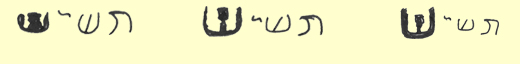 وكلّ حلقة منها تشكل حرف الشين( ( وعلى هذه يتشكّل لدينا ثلاث كلمات، الجزء الأوّل منها تمثِّله كلمة (tsy/tsw)، والجزء الثاني هو الحرف الذي تمثله حلقة الشمعدان (الشين)، على النحو الآتي: | ||