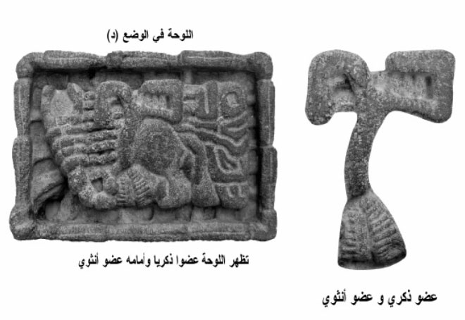 وإذا قُلبت اللوحة إلى الجانب الأفقي الآخر ونسميه الوضع (د) يظهر فرج ذكري وأمامه فرج أنثوي. |